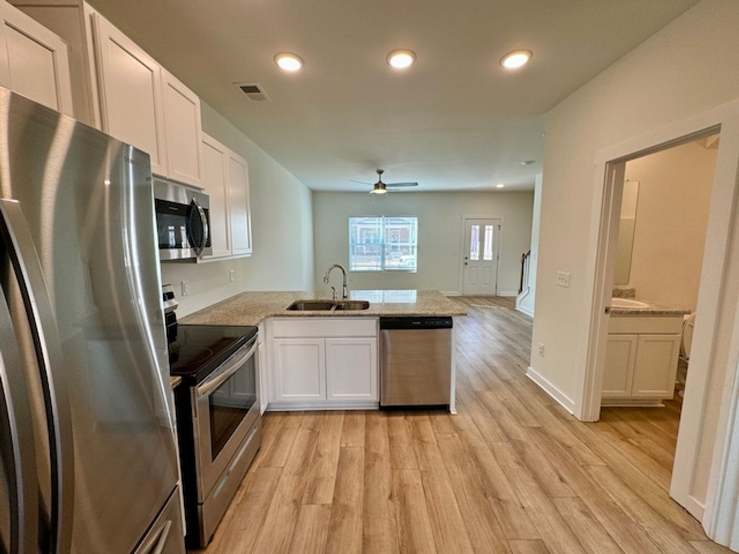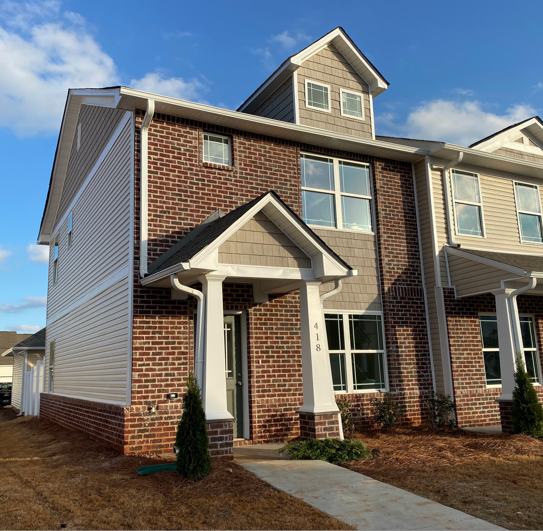 MOVE IN SPECIAL: $500 OFF YOUR FIRST FULL MONTH'S RENT! Welcome to 418 Falls Pointe, located just outside Redstone Arsenal Gate 7. This end unit townhome features a spacious two story floorplan and outdoor courtyard in between the patio and the detached garage. Come inside to the sunny living room/dining room combo, beautiful kitchen and the guest bedroom and full bathroom downstairs, along with w/d connections. Upstairs is the primary suite complete with a walk-in closet & a private bathroom with dual vanities & a shower. Also upstairs is another bedroom & private bathroom. The 3rd bed & bath are downstairs. 2-car detached garage. Tenant to verify William Elementary and Middle Schools, and Columbia High.