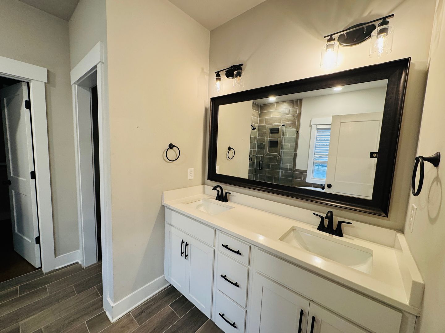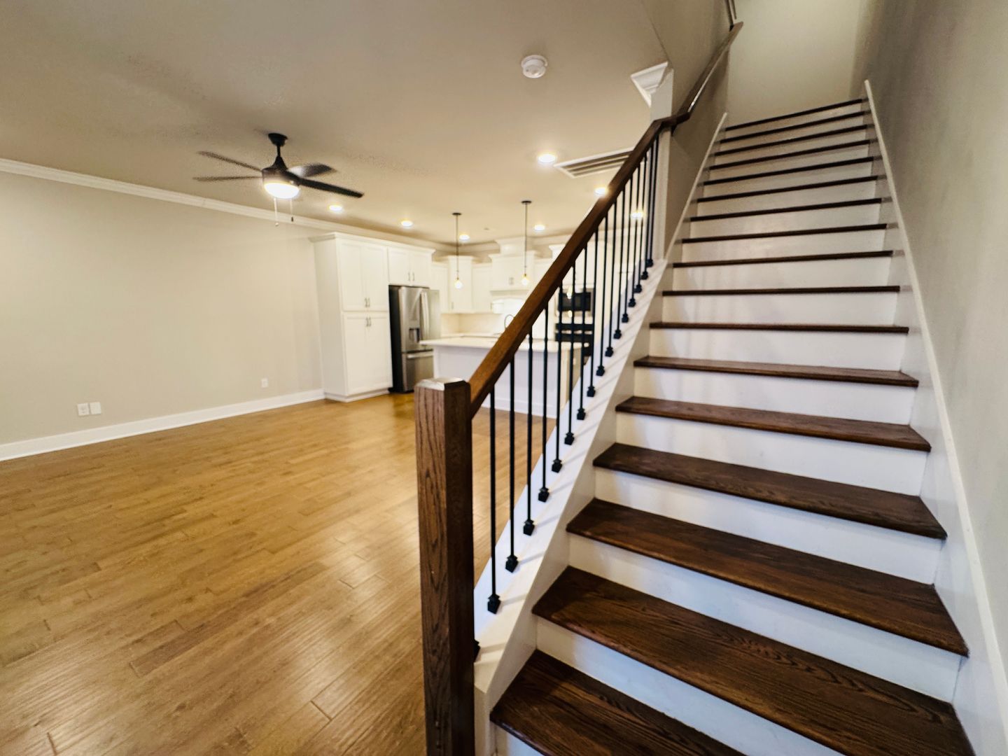 Look and lease! Beautiful townhome with three bedrooms and two full baths, plus a half bath, attached garage, and w/d included in laundry room. The primary bedroom has a balcony overlooking the front porch, two primary bedroom closets and an attached bathroom including a free standing tub with tile surround as well as a tile shower with glass enclosure. Luxury updates in the kitchen include: quartz countertops throughout, soft close cabinets & drawers, stainless steel farmhouse sink. There are ceiling fans in all bedrooms. You’ll find ceramic tile in all wet areas & wood floors in all main traffic areas including the primary bedroom. You'll love the 9' ceilings as well as crown molding throughout.